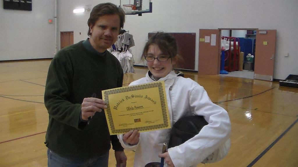 The Patrick Desimio Award is given to an OFC fencer that has shown commitment to our sport and a high degree of good sportsmanship during practice. The recipient of the Patrick DeSimio award is granted free fencing with us for one season, which runs from August 1st to July 31st of the following year. This includes free access to all fencing the OFC has to offer as well as private instruction to improve their fencing further.